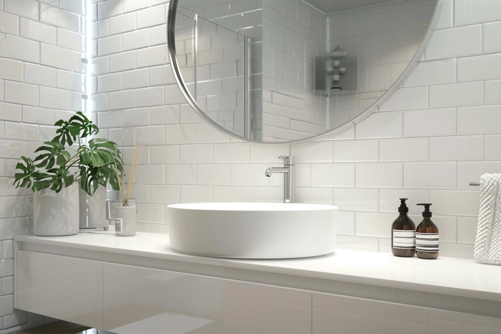 In a contemporary bathroom, pairing white subway tiles with matte black faucets and sleek, handleless vanity cabinets emphasizes minimalism. In more traditional spaces, bevel-edged subway tiles combined with a shaker-style vanity in soft gray and brushed nickel hardware create a refined, classic feel.