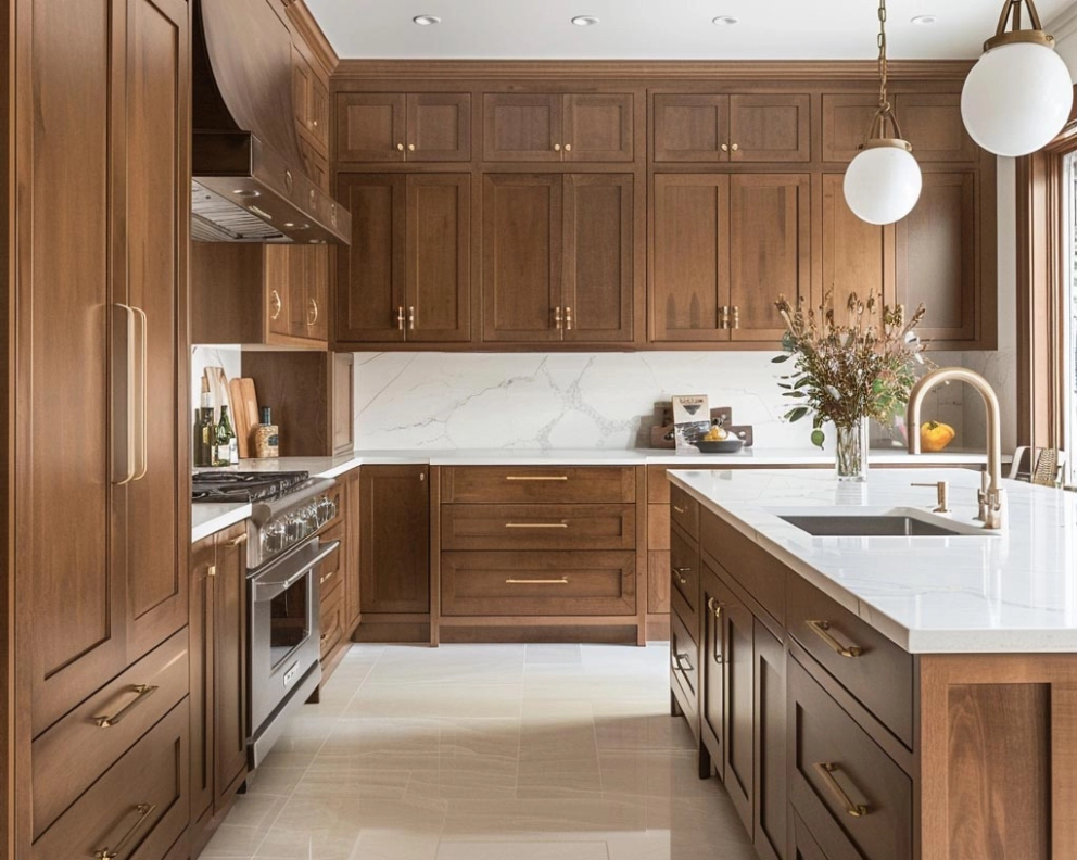 This time, Cut2Size experts offer you a guide on toffee kitchen cabinet ideas. In this post, you will learn which wood species are the best for toffee cabinet staining and how to combine them with other items in the kitchen, like countertops, walls and floors.