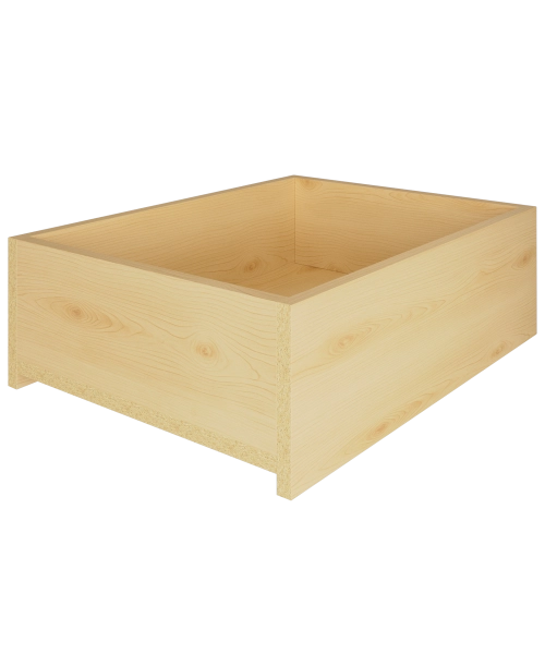 Melamine drawers are commonly used in cabinet construction for kitchens, bathrooms, closets, and other storage areas. The edges are typically finished with matching edge banding to protect against chipping and moisture penetration.